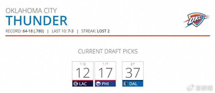 雷霆管理层是联盟顶级的水准,他们不但打造了一支冠军级别球队,手中还囤积有不少选秀权。由于火箭拼命赢球,他们今年的签属于首轮末段,贬值了。雷霆在交易截止日得到了2024年16号秀麦凯恩,把火箭今年的首轮签作为筹码给了76人。
